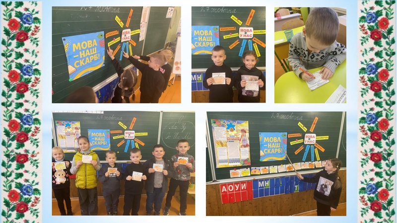 Учні 1-А класу (класний керівник Тільчарова Н.О.) написали свій перший у житті диктант з вивченими буквами, склали асоціативний кущ про мову, вивчили вірш за мнемотаблицею, склали пазл з прислівʼям та пояснили значення мови в житті кожного українця.