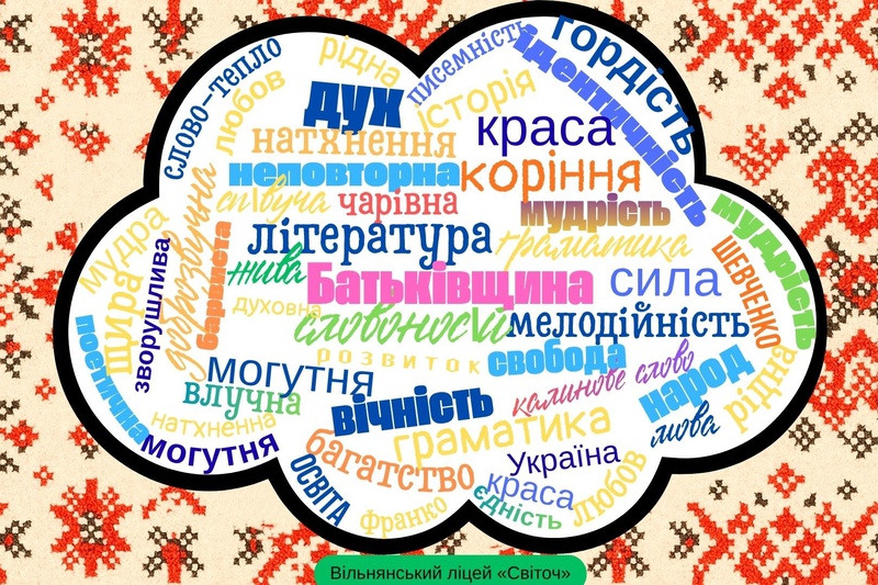 Лідери учнівського самоврядування під керівництвом педагога-організатора Амеліна Є.М. створили хмару слів до Дня української писемності та мови, в якій відобразили ключові слова, що асоціюються з багатством, історією та значенням рідної мови для кожного українця.