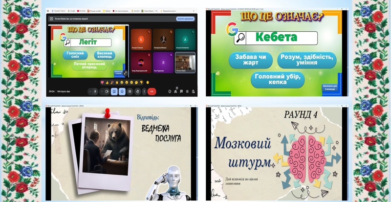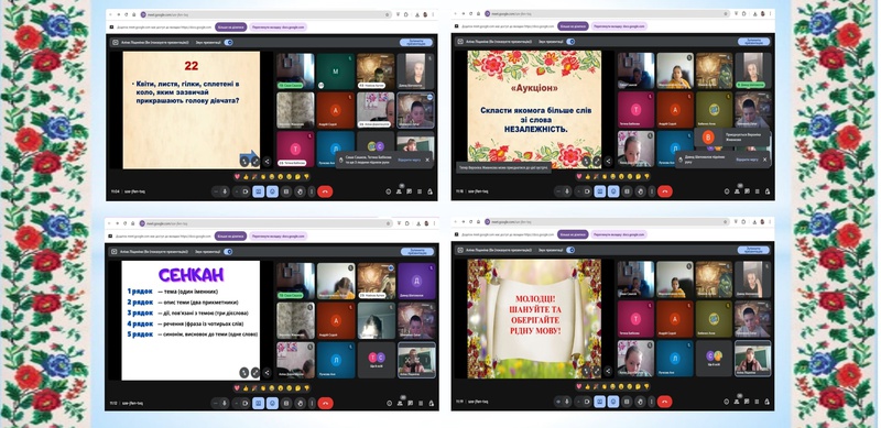 Педагог-організатор Амелін Є.М. провів вікторину для учнів 4-х класів «Ми знаємо українську мову» під час якої кожна команда показала свою згуртованість та активно відповідали на запитання, демонструючи знання з різних розділів української мови, з учнями 8-х, 9-х та 11-х класів пограв в гру «Фініш народної мудрості», під час якої здобувачі освіти продовжували незакінчену фразу народного прислів’я чи приказки.
