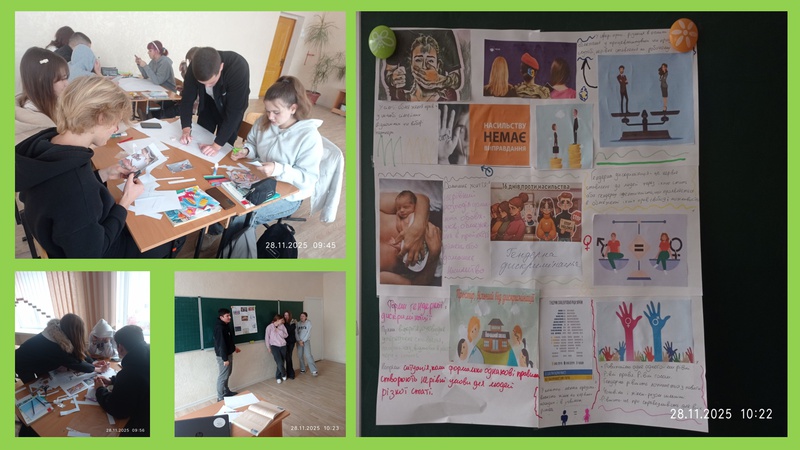Учні 6-Б класу (класний керівник Ліщиніна А.О.) на виховній годині ознайомилися з основними видами насильства, його ознаками та наслідками для людини й суспільства, дізналися про шляхи захисту своїх прав, а також про діяльність служб і організацій, які працюють у сфері запобігання насильству. Захід сприяв формуванню толерантності, поваги одне до одного та усвідомленню власної відповідальності у створенні безпечного освітнього середовища.