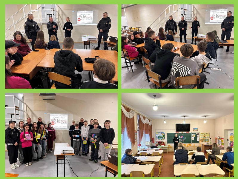 28 листопада в рамках проведення Всеукраїнської акції «16 днів проти насильства» інспектором СЮП ВП ЗРУП сумісно з поліцейськими офіцерами Вільнянської ТГ для учнів 8-х класів проведено інформаційно-профілактичний захід «Скажи НІ насильству». Під час зустрічі співробітники поліції розповіли учням про актуальність даної проблеми, про найпоширеніші види насильства, які вчиняються відносно дітей (домашнє насильство, булінг, кібербулінг), повідомили, що насильство має різні форми: фізичну, психологічну, сексуальну та економічну. Підліткам пояснили, як розпізнати ознаки насильства, чому важливо не замовчувати такі випадки та які інституції можуть надати допомогу. Також було наголошено на відповідальності за вчинення насильницьких дій, необхідності поваги до прав інших людей.