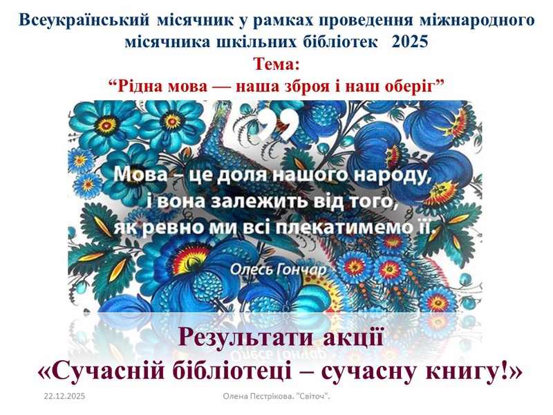 Результати доброчинної акції "Сучасній бібліотеці - сучасну книгу!"