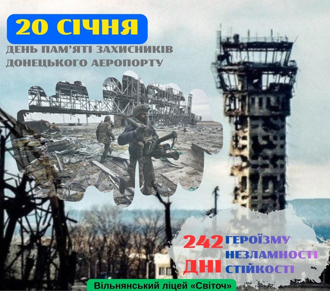 Захисники Донецького аеропорту стали символом незламності українського духу, прикладом мужності, братерства і вірності присязі. Їхня боротьба довела усьому світу — Україну неможливо зламати, поки є ті, хто готовий стояти до кінця! Пам’ятаємо Кіборгів і знаємо — доки живе пам’ять про наших Героїв, доти житиме Україна.